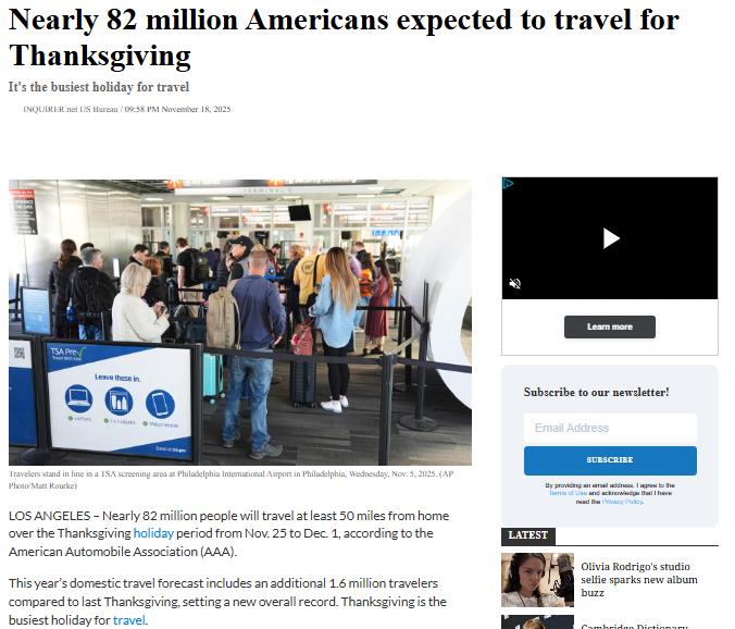 According to travel associations, Thanksgiving week records some of the highest travel numbers in the country. Many of these travelers enter Southern California, including Torrance, to reunite with family.